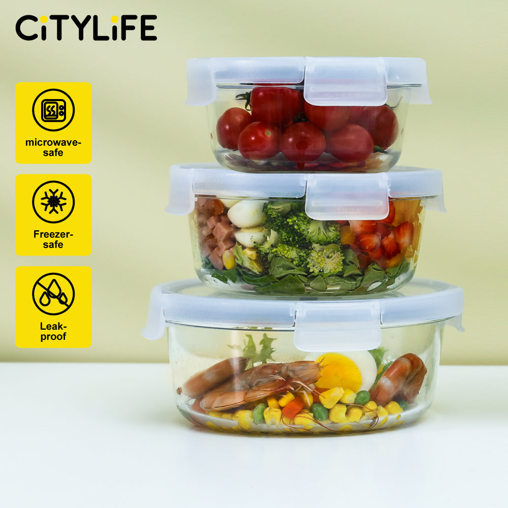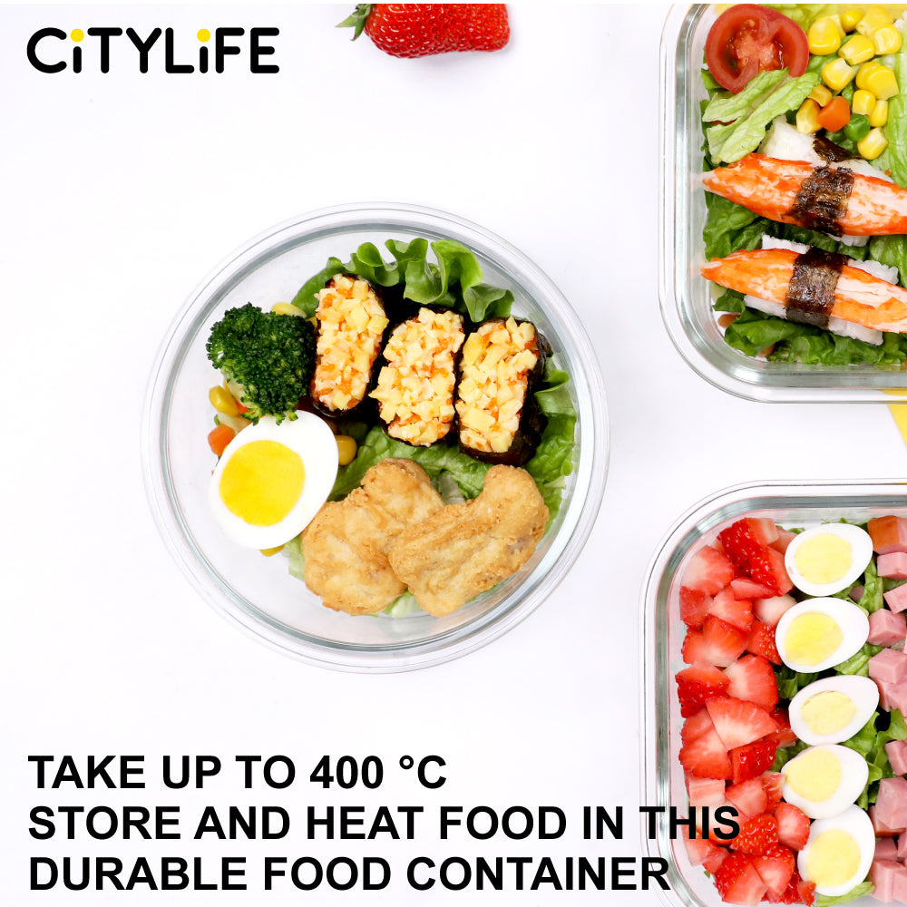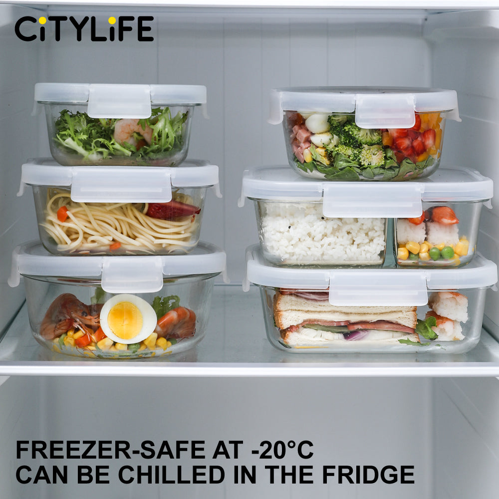 Citylife Glass Food Container Bundle Air-tight Glass Lunch Box Microwaveable BPA Free Bento Box Fridge Container