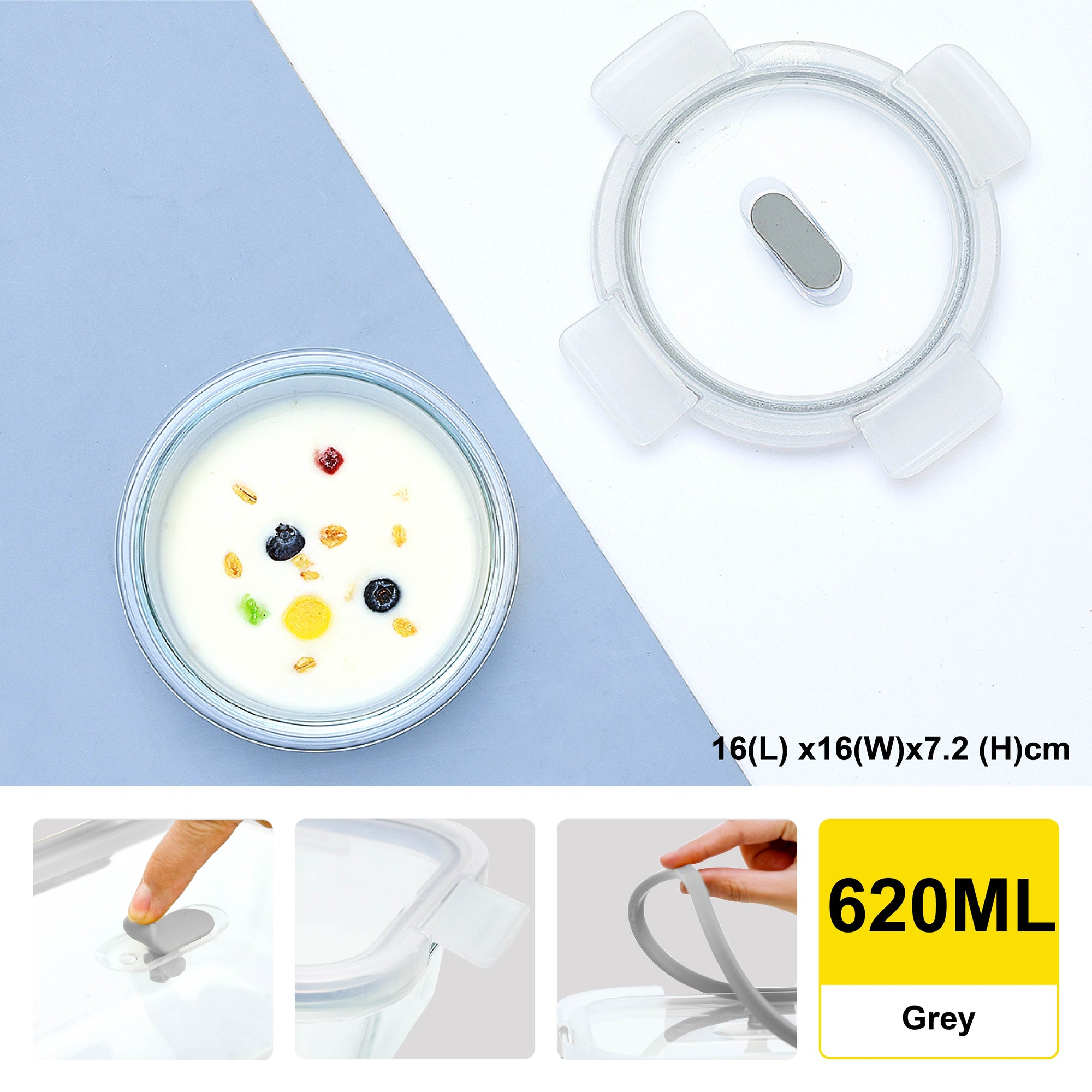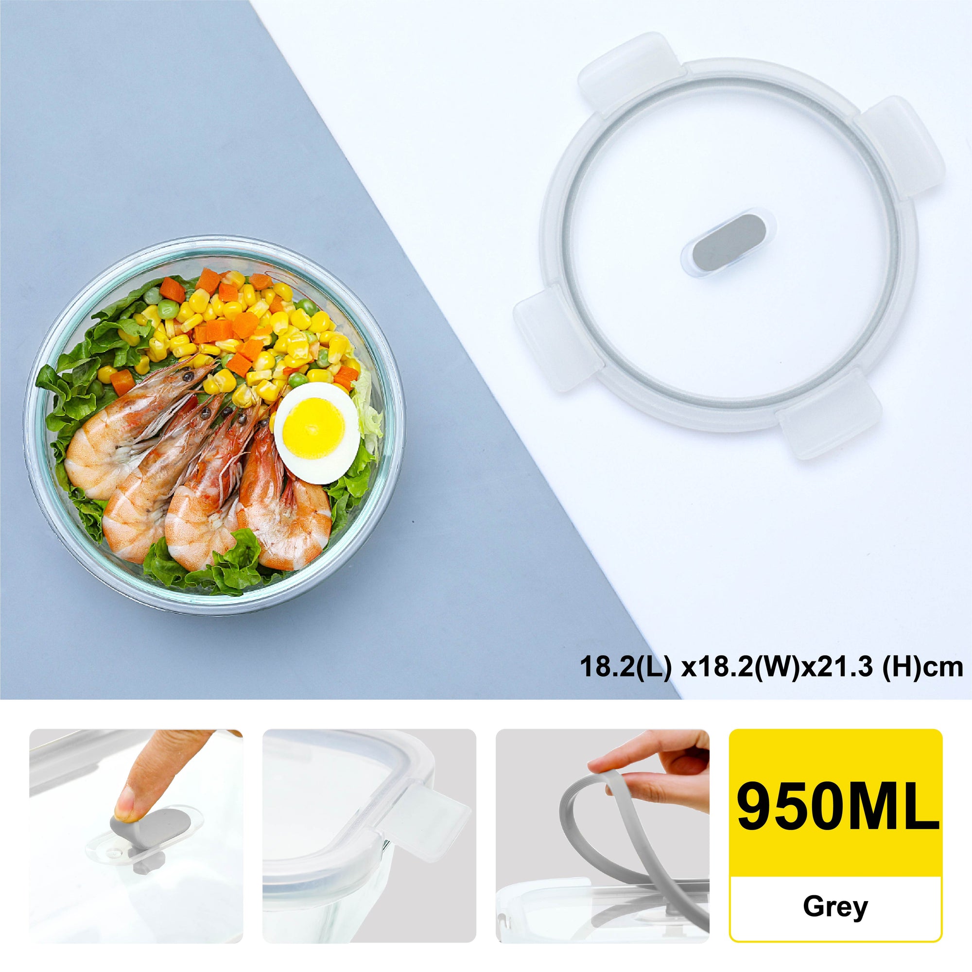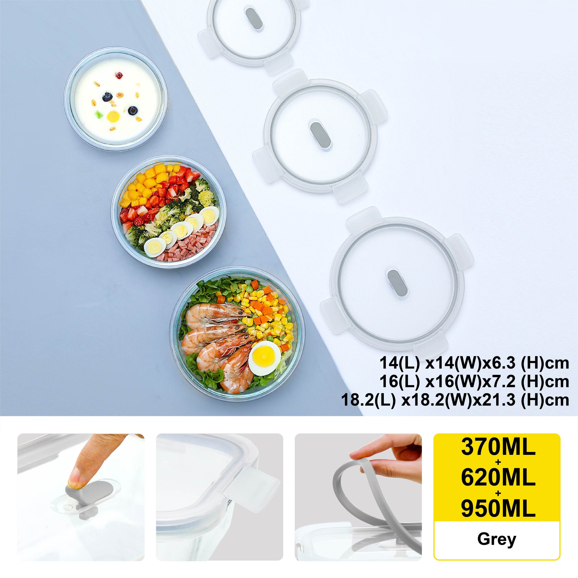 - Durable design for long usage and air-tight seal of food.