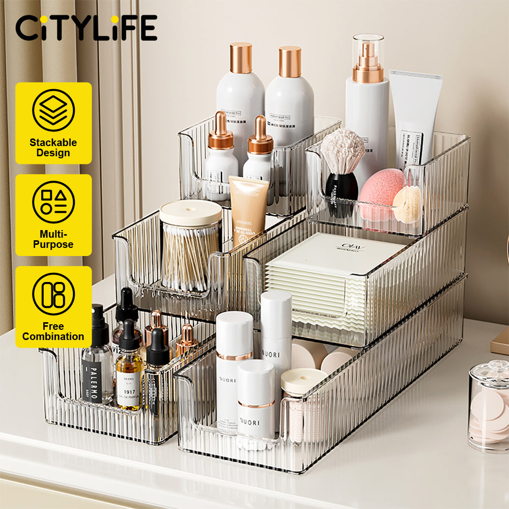 Citylife Desktop Storage Box Acrylic Transparent Storage Basket Makeup Box Stackable Organizer