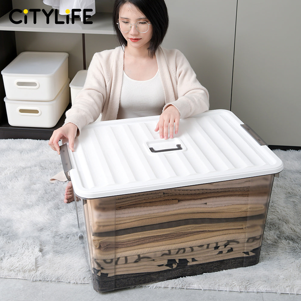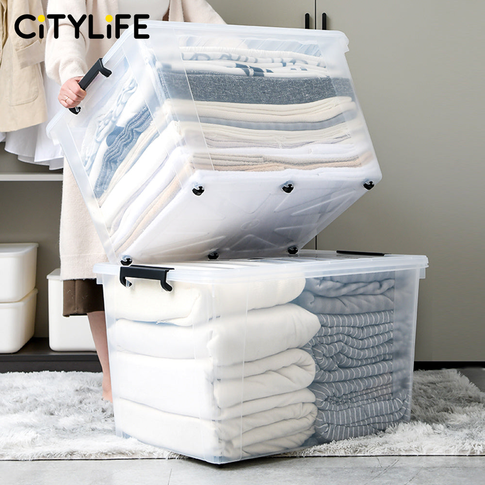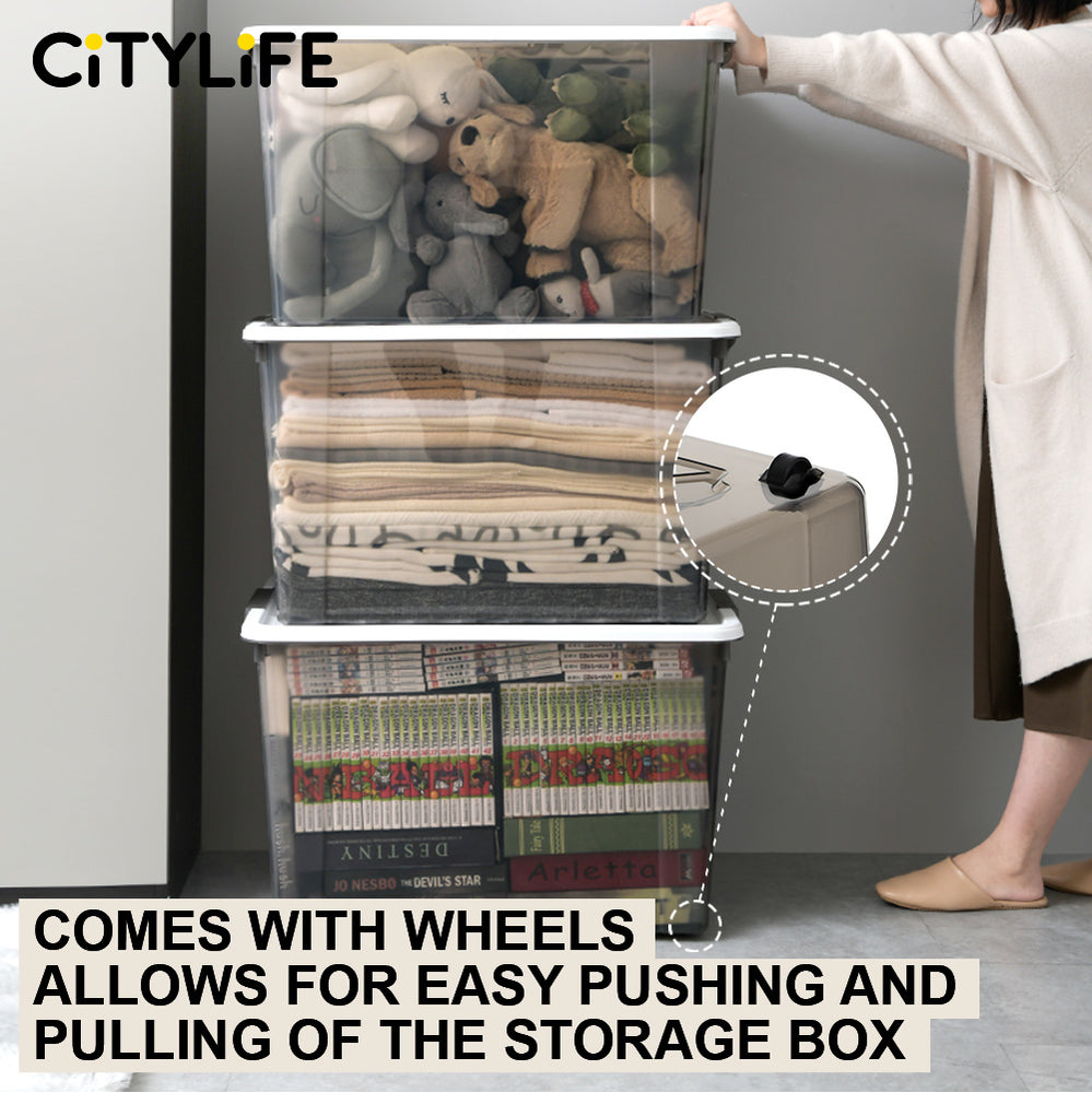 Citylife Stackable Storage Box With Wheels Plastic Storage Box Organizer Large Capacity Container With Wheels