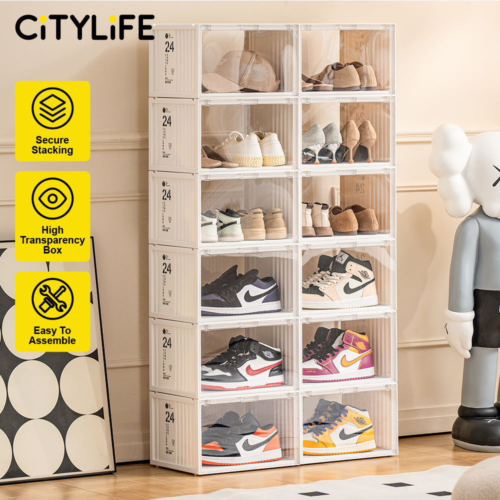 Citylife 22L Big Capacity Stackable Magnetic Shoes Sneakers Storage Shoe Display Box Shelf Rack Organizer