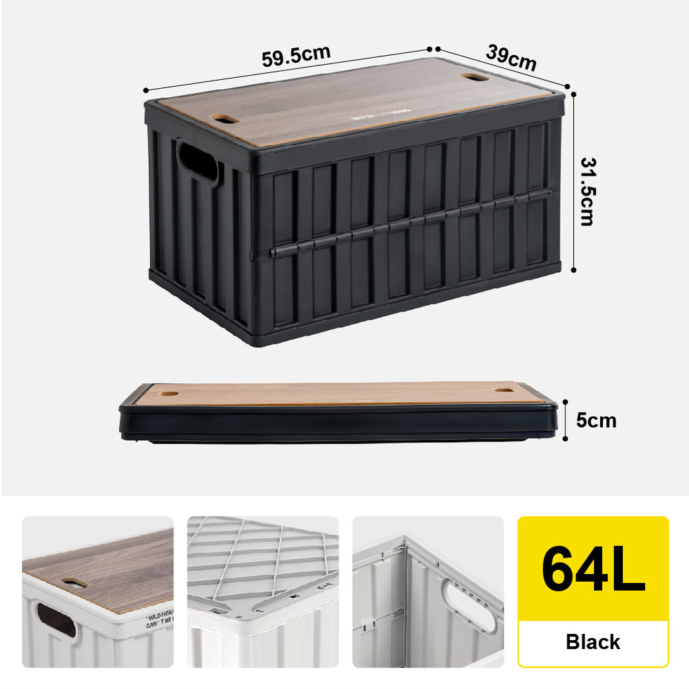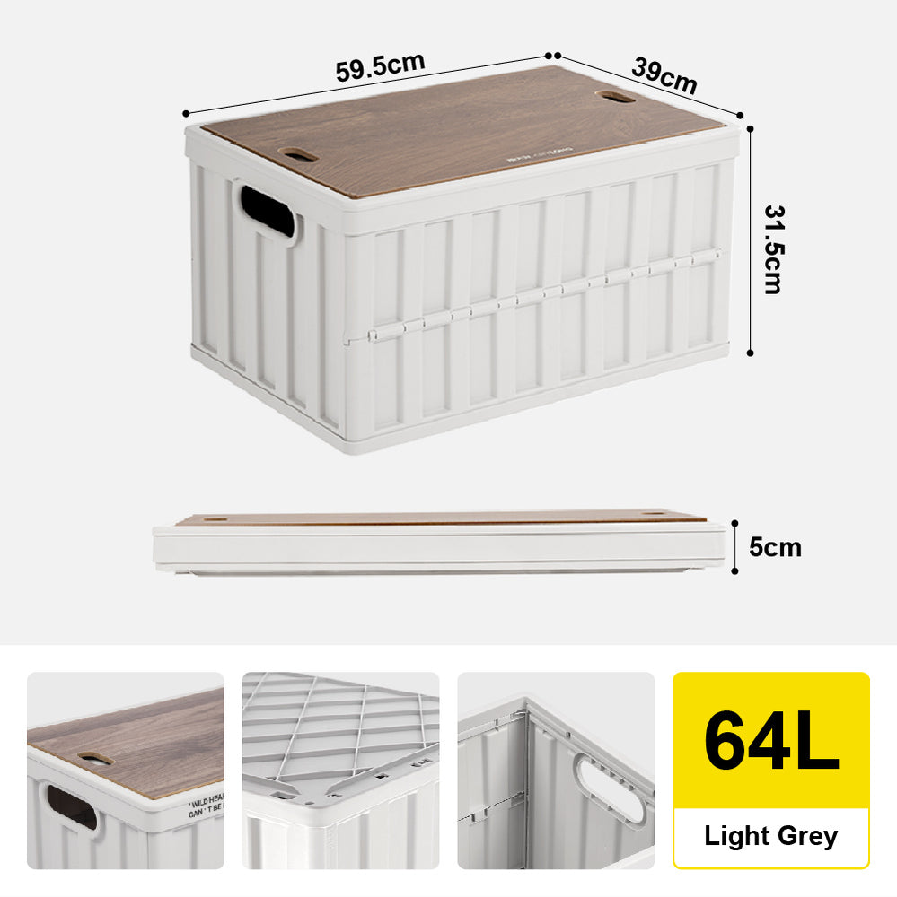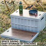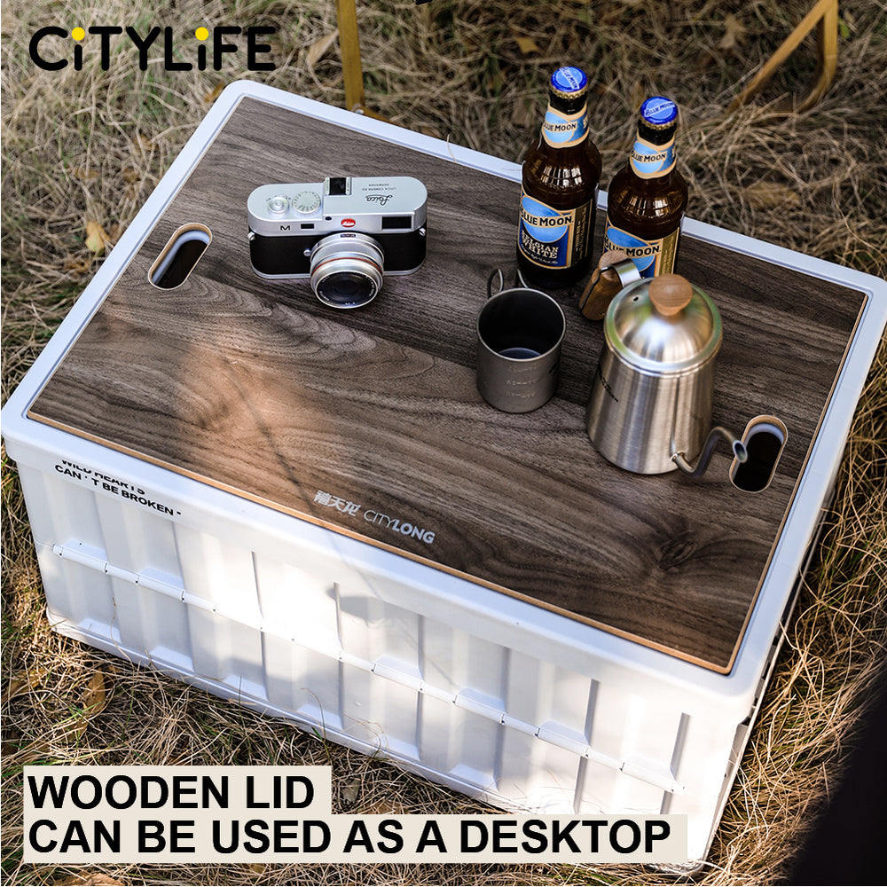 Citylife 64L Collapsible Storage Box Crate with Lid Folding Storage Box with Wooden Cover Panel for Home Outdoor Camping