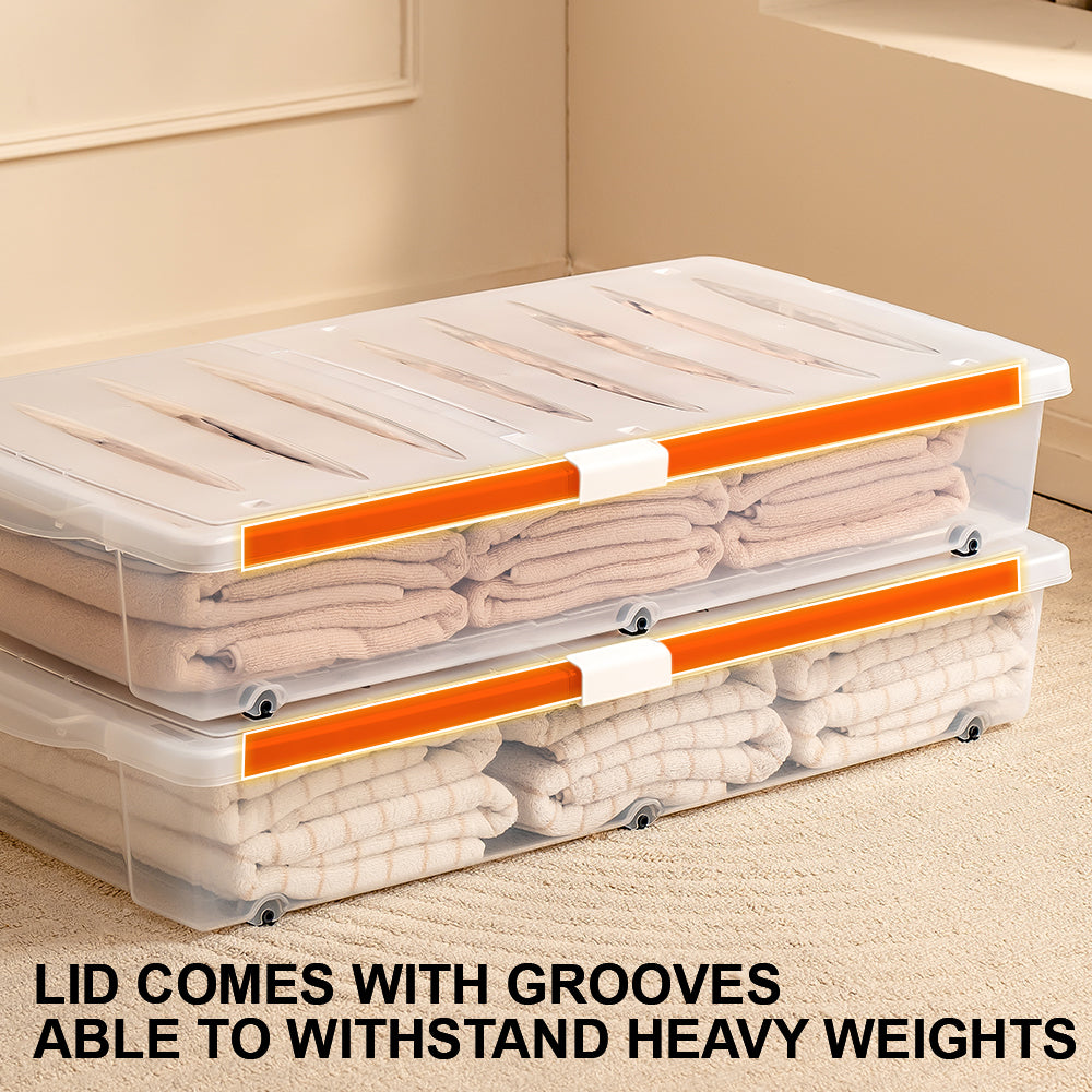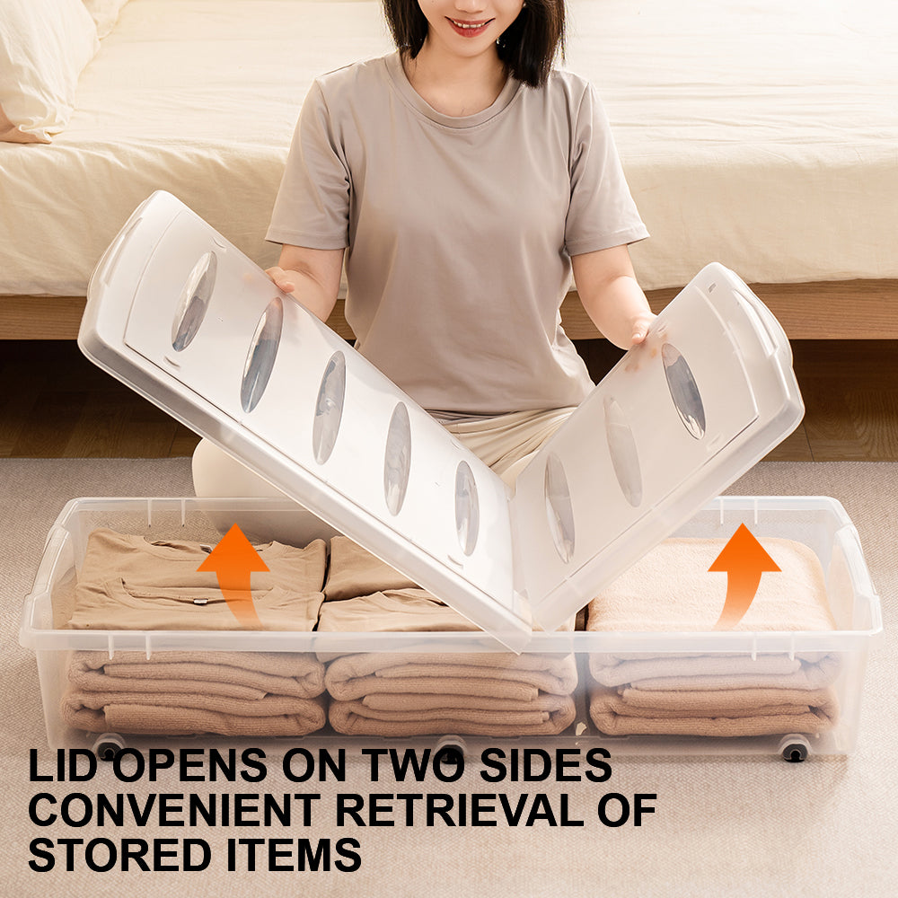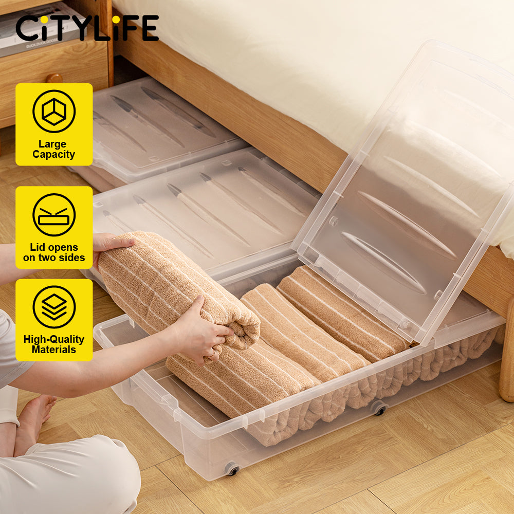 Citylife 54L Underbed Storage Box With Wheels Dormitory Quilt Sorting Box Double-sided Lid