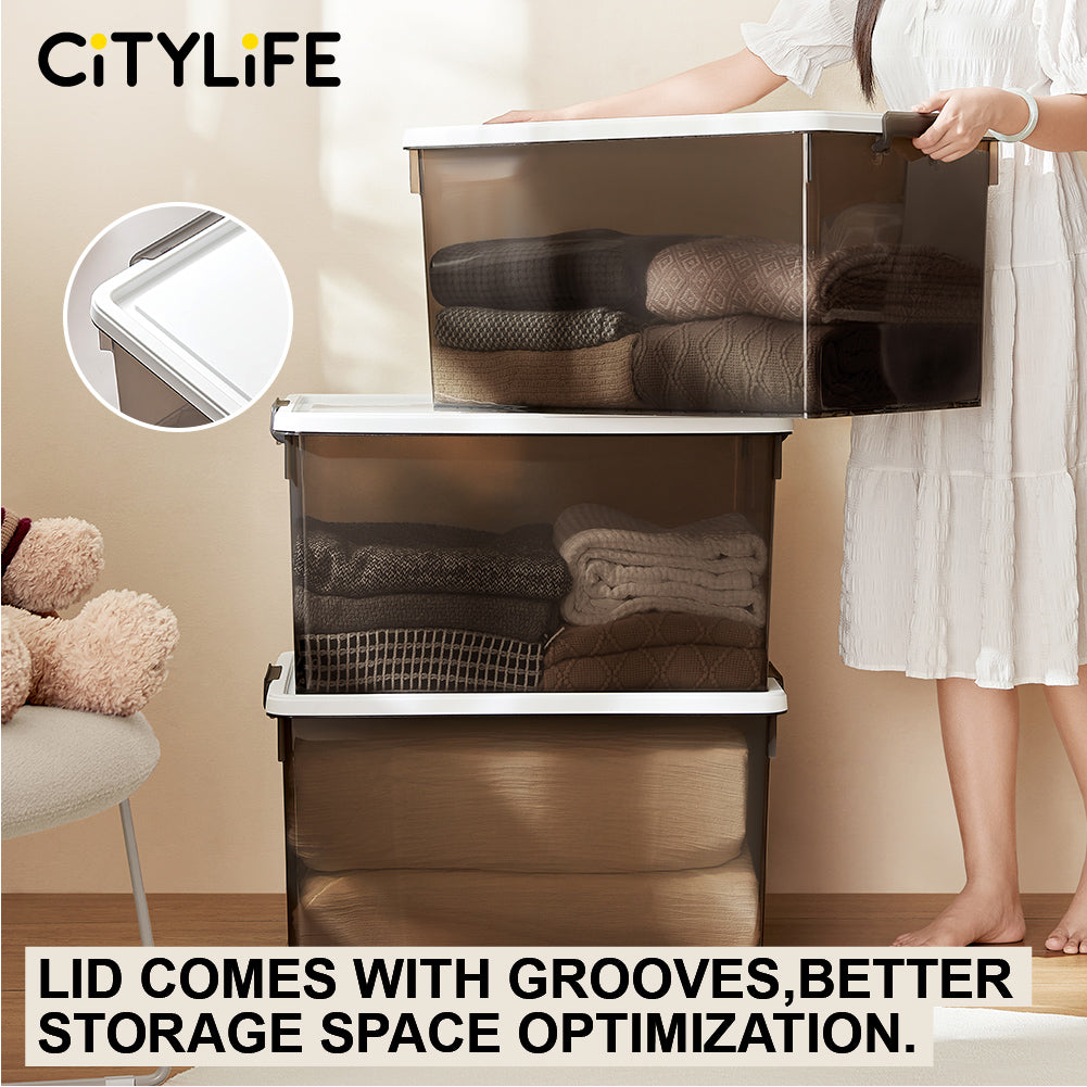 Citylife PIATTO Stackable Storage Box With Wheels Plastic Storage Box Organizer Large Capacity Container 21L/31L/45L/65L